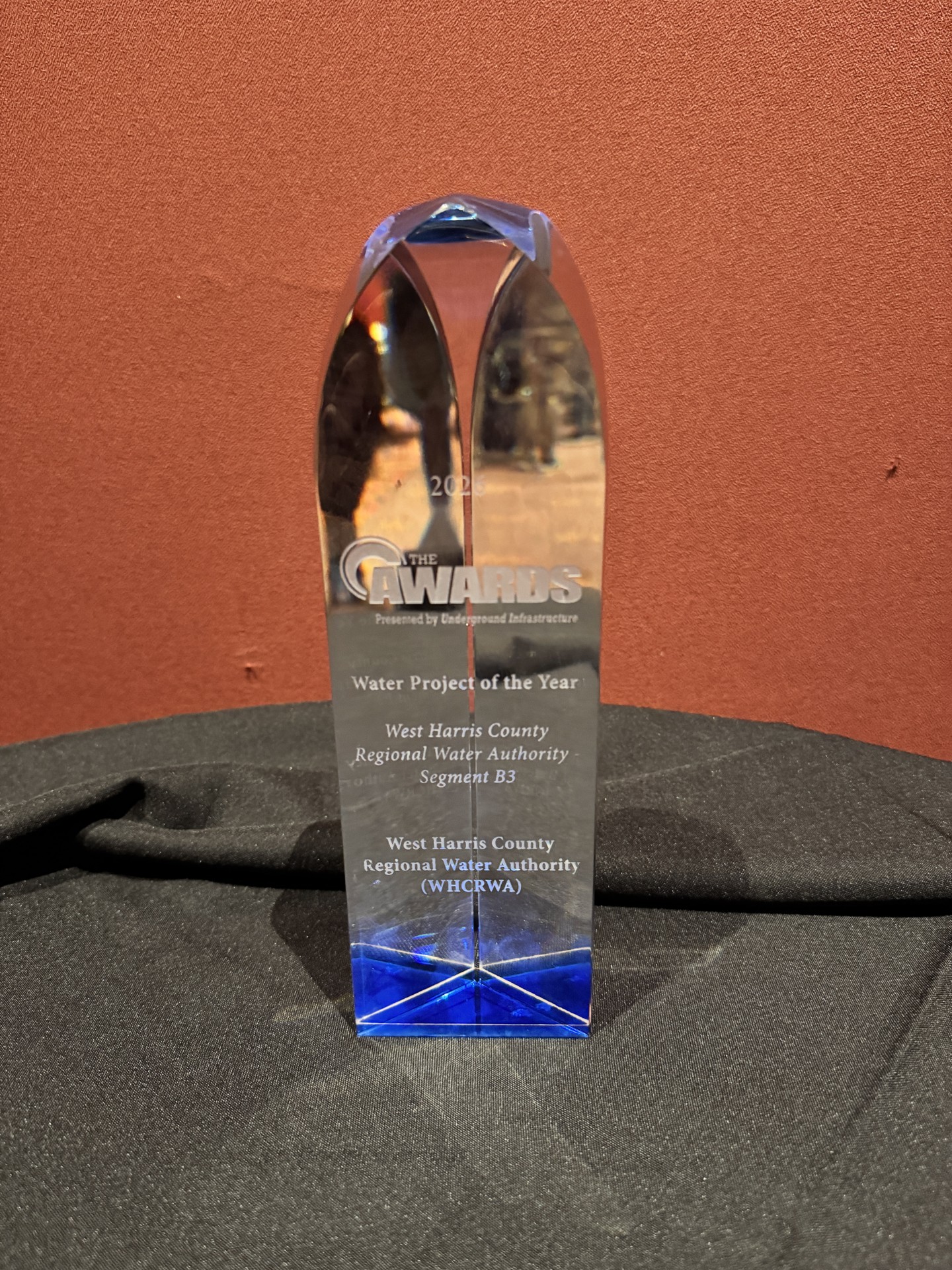 The West Harris County Regional Water Authority (WHCRWA) received the 2026 Water Project of the Year Award for Segment B3 at the Underground Infrastructure Conference (UIC), held January 27–28, 2026, in San Antonio.
